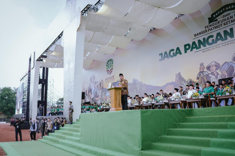 Bupati Banyumas Sadewo Tri Lastiono menyambut hangat dan ikut mendukung pengukuhan 100 ribu Banser Patriot Ketahanan Pangan. Hal tersebut diungkapkan pada sambutannya dalam acara Rapat Akbar dan Pengukuhan 100 Ribu Banser Patriot Ketahanan Pangan pada Kamis (24/4/25) sore di Gelanggang GOR Satria Purwokerto