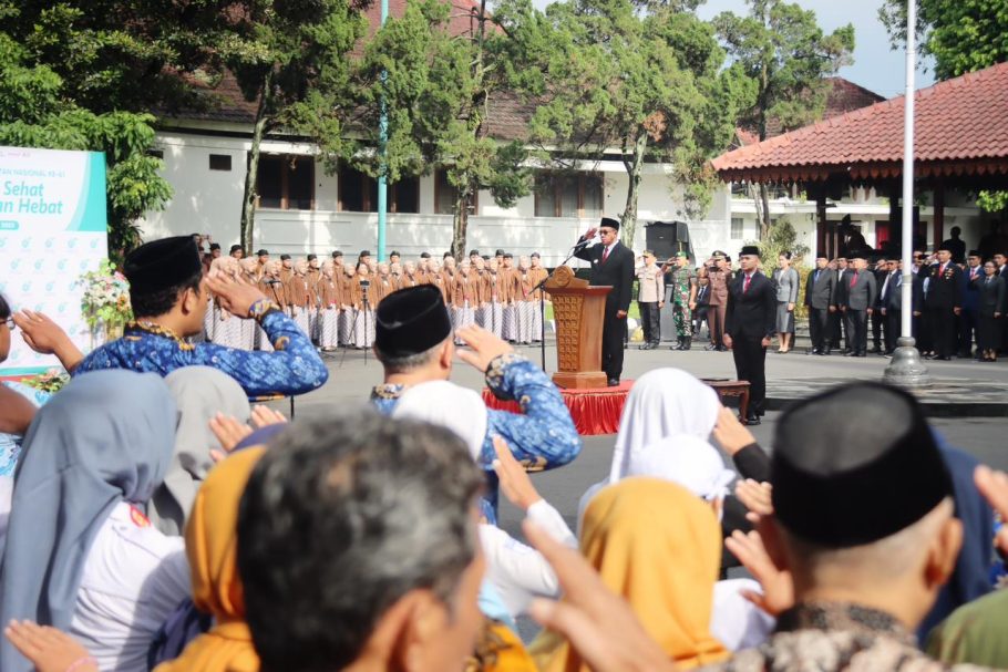 Bupati Banyumas, Sadewo Tri Lastiono memimpin upacara peringatan Hari Kesehatan Nasional (HKN) ke-61 yang digelar di Halaman Pendopo Si Panji, Selasa (12/11/25). Dengan mengusung tema “Generasi Sehat, Masa Depan Hebat,” Bupati menegaskan pentingnya kesehatan sebagai fondasi utama dalam membangun masa depan Banyumas dan Indonesia menuju visi Indonesia Emas 2045.