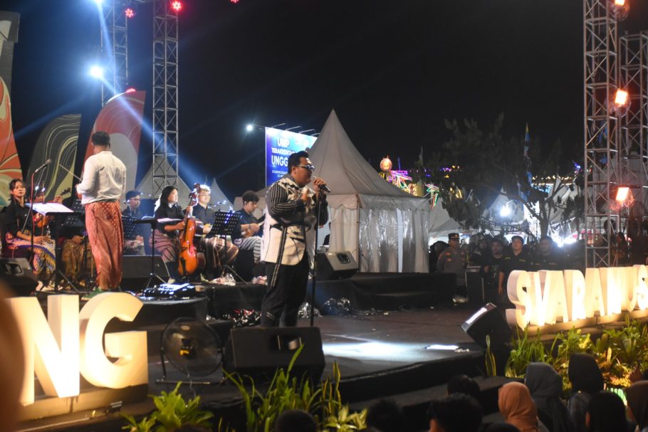 PURWOKERTO- Kolaborasi penyanyi koplo Ndarboy Genk dengan orkestra keroncong pada gelaran Keroncong Svaranusa 2024 di Menara Pandang Teratai Purwokerto, Banyumas, Sabtu (29/6/2024) malam mampu menyedot penonton.
