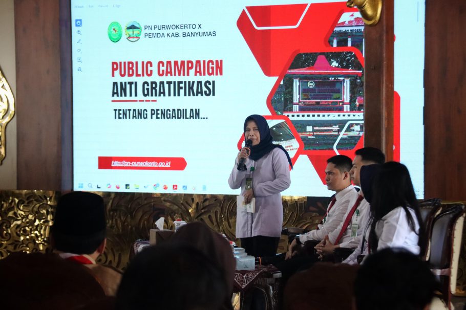 Pengadilan Negeri (PN) Purwokerto bekerja sama dengan Pemerintah Kabupaten Banyumas menggelar acara “Public Campaign Anti Gratifikasi dan Layanan Hukum di Pengadilan Negeri Purwokerto” Senin 14 April 2025 di Pendopo Si Panji Purwokerto. Acara ini menghadirkan Lurah dan Kepala Desa yang berada di wilayah hukum PN Purwokerto dan dibuka oleh Sekretaris Daerah Kabupaten Banyumas Agus Nur Hadie.